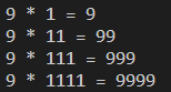 이러한 출력 결과가 나왔을 때, 9 뒤에 곱해지는 수의 자리수가 다르기 때문에 결과값의 위치가 맞지 않습니다.(불편...)