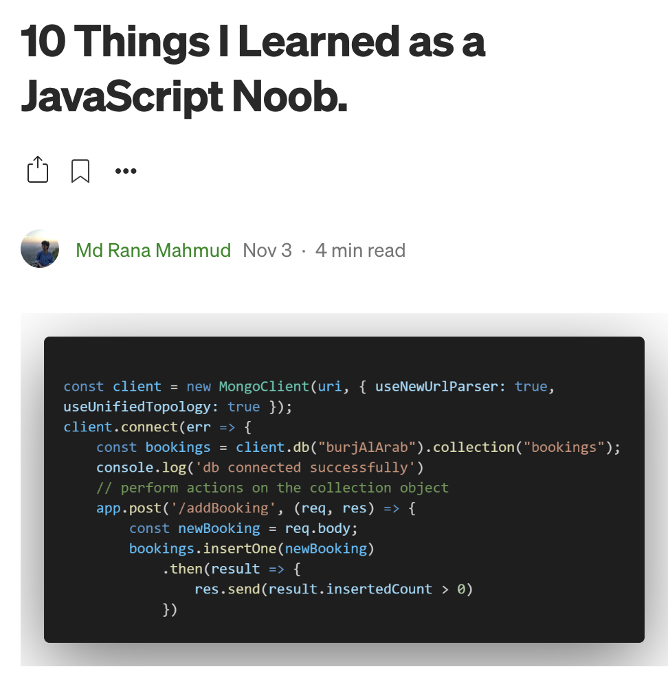 본 문서는 Md Rana Mahmud의 10 Things I Learned as a JavaScript Noob. [https://ranamahmud.medium.com/10-things-i-learned-as-a-javascript-noob-e6dfd19c80e1] 글을 번역한 내용입니다.