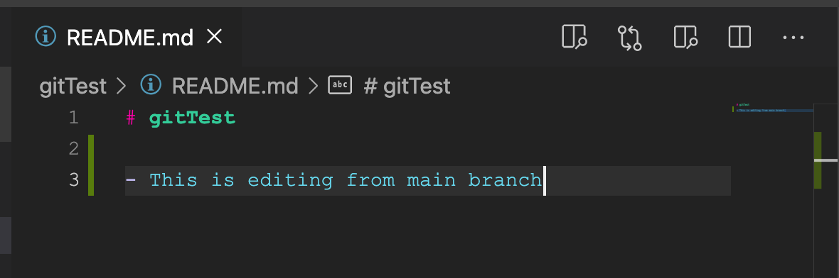 9. 이렇게 current branch를 main으로 변경해주면 vsc에서도 main branch를 수정할 수 있게된다.
