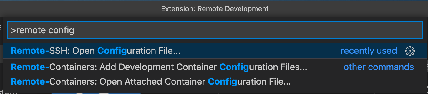 설치가 끝났으면 커멘트 쉬프트 P를 눌러 remote config라고 입력한다. 그러면 Remote-SSH: Open Configuration File이 보이는데 실행!