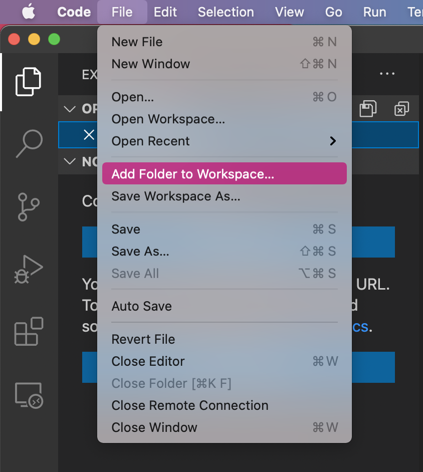 File -> Add Folder to Workspace를 해서 원하는 디렉토리를 추가해주면 된다.