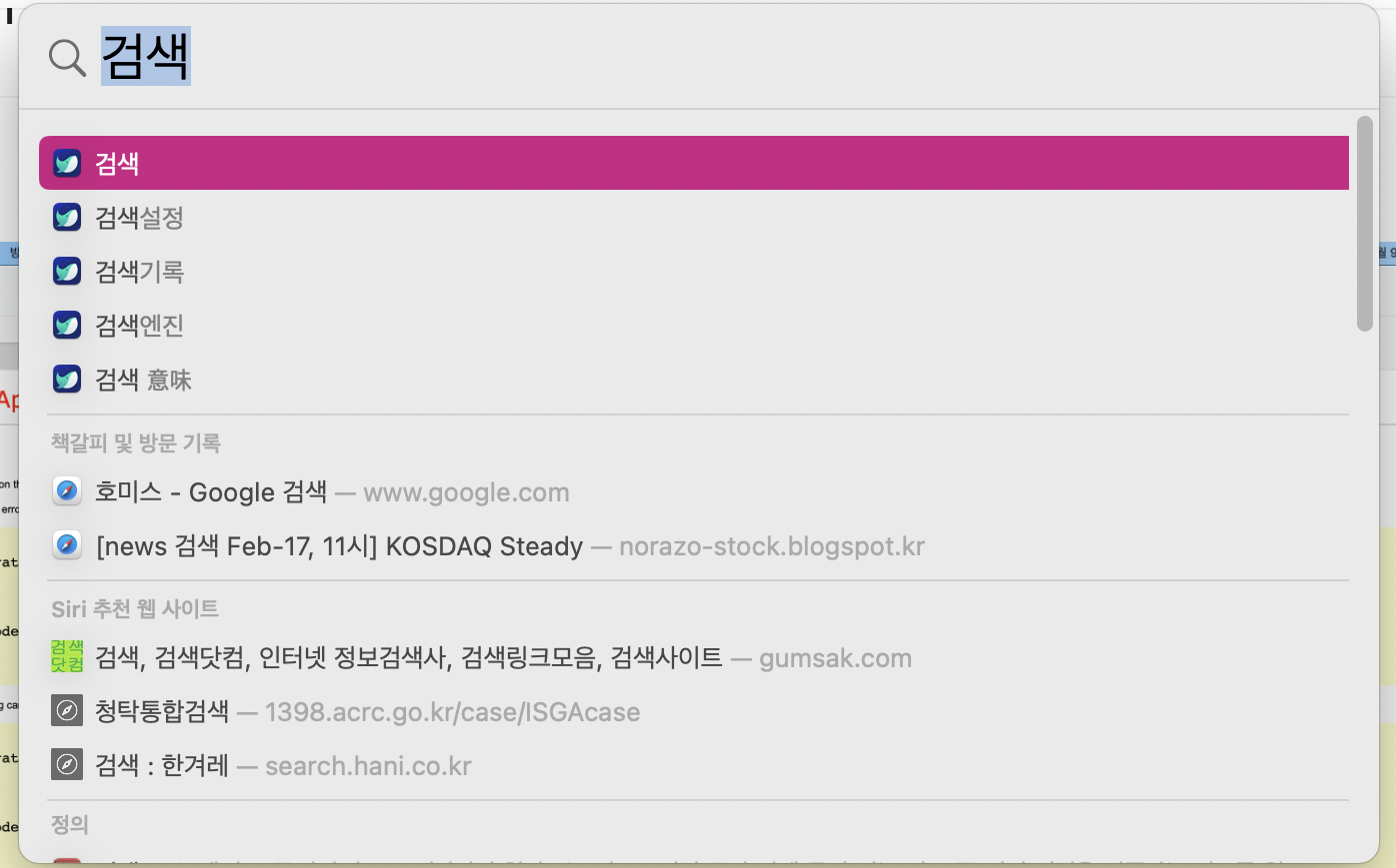 추가적으로 웨일에서도 spotlight와 비슷한 기능이 추가되었다!!