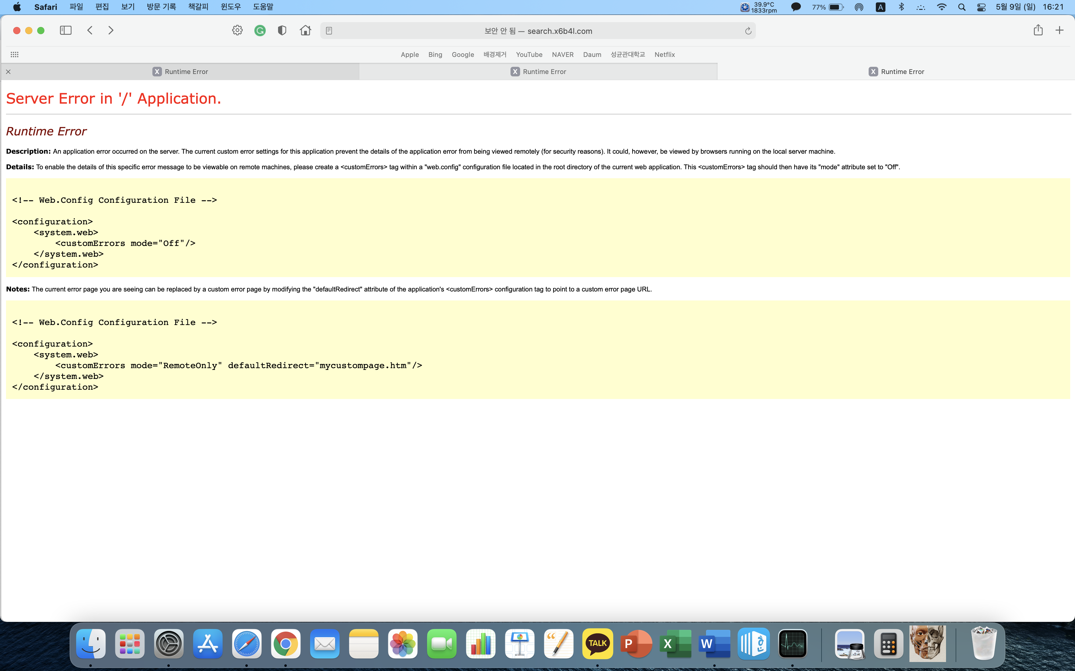 사파리에서 검색을 할 때, Server Error in '/' Application 이라는 에러에 대한 해결 방법에 대해 소개하고자 한다.