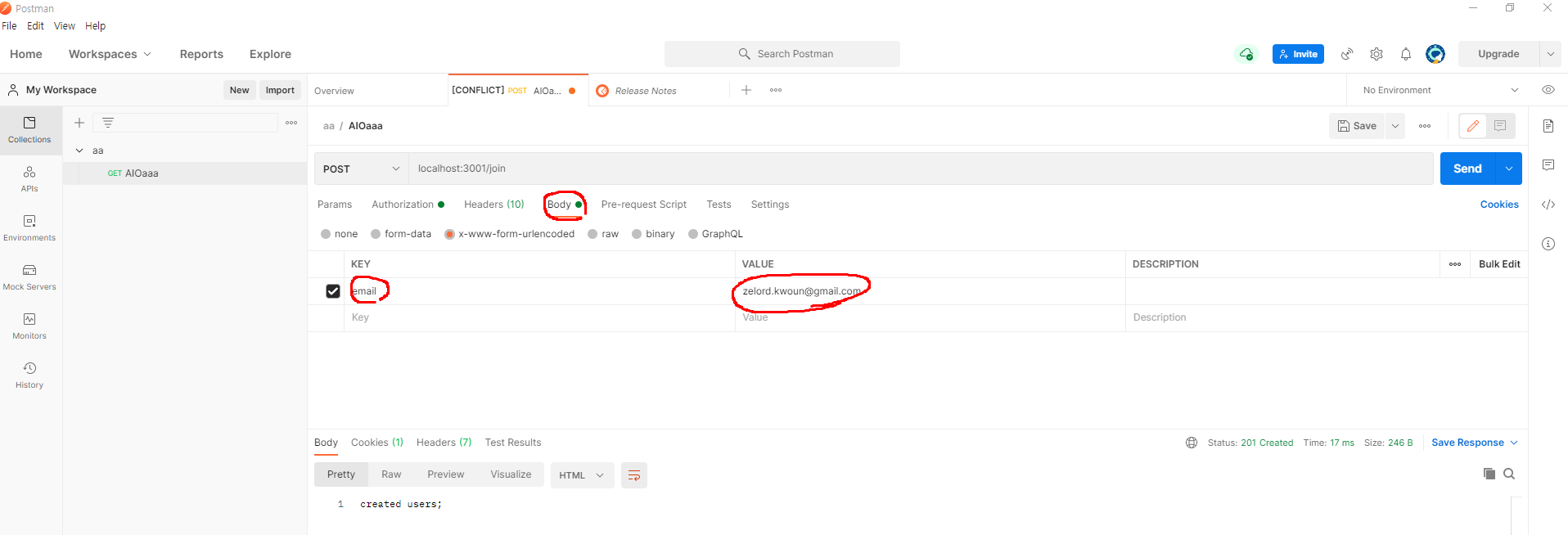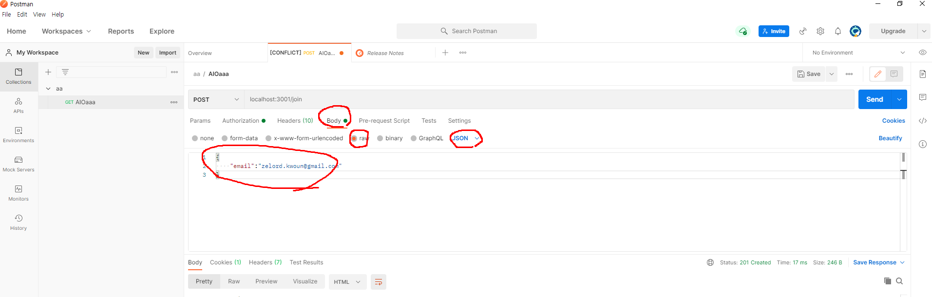 이렇게 post를 테스트 할 때는 postman이라는 프로그램을 이용해도 되는데, 가끔 요청하는 방식에 따라 응답이 오지 않을 수도 있기 때문에 아래와 같이 요청을 보내야 한다.