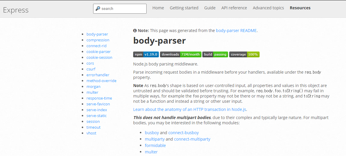 하지만 최신버전에서는 express가 body-parser를 포함하고 있기 때문에 별도로 require를 할 필요가 없다고 한다.