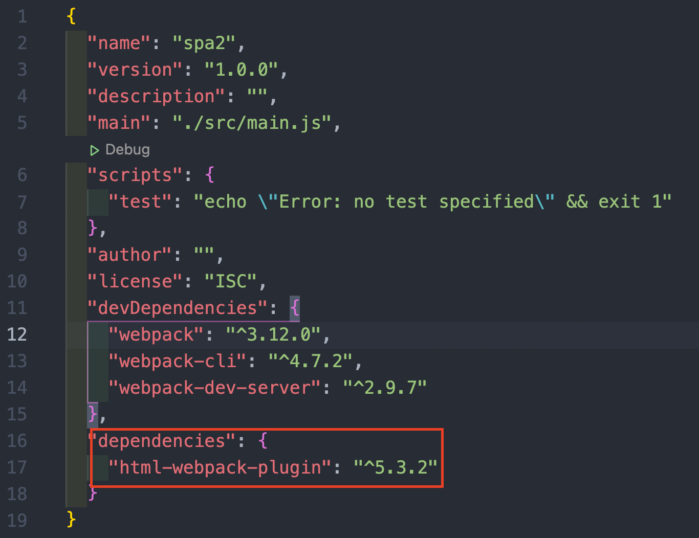 package.json을 살펴보면 html-webpack-plugin이 5.3.2버전을 사용중인 것을 알 수 있다.