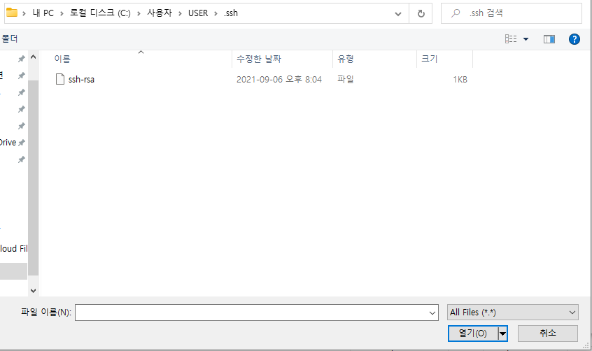 putty에서 만들었던 .ppk파일이 아닌 그냥 키 파일을 선택하면 된다.