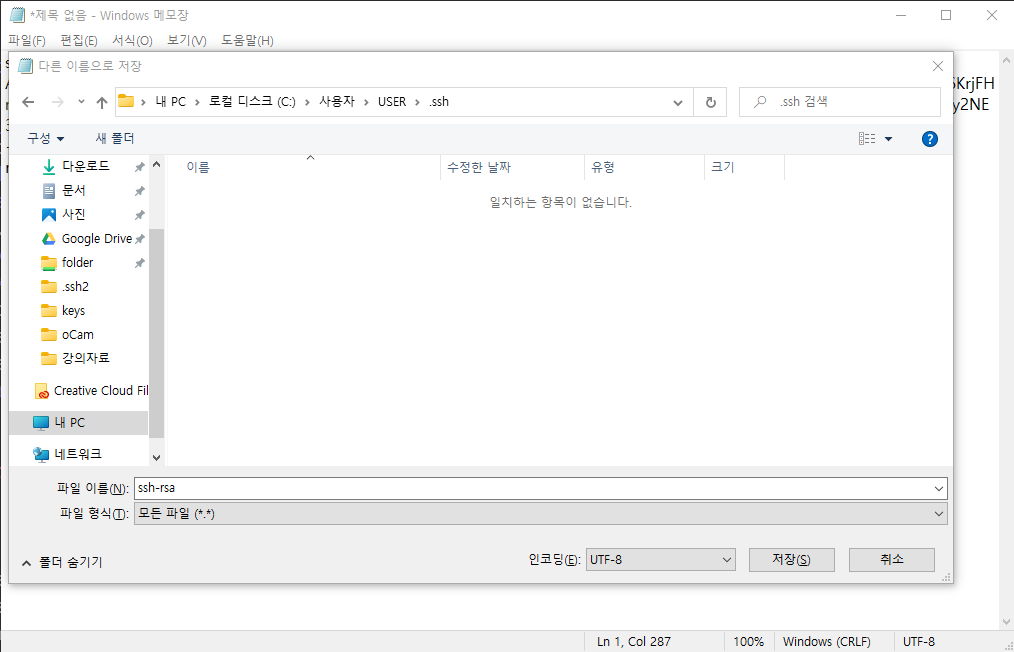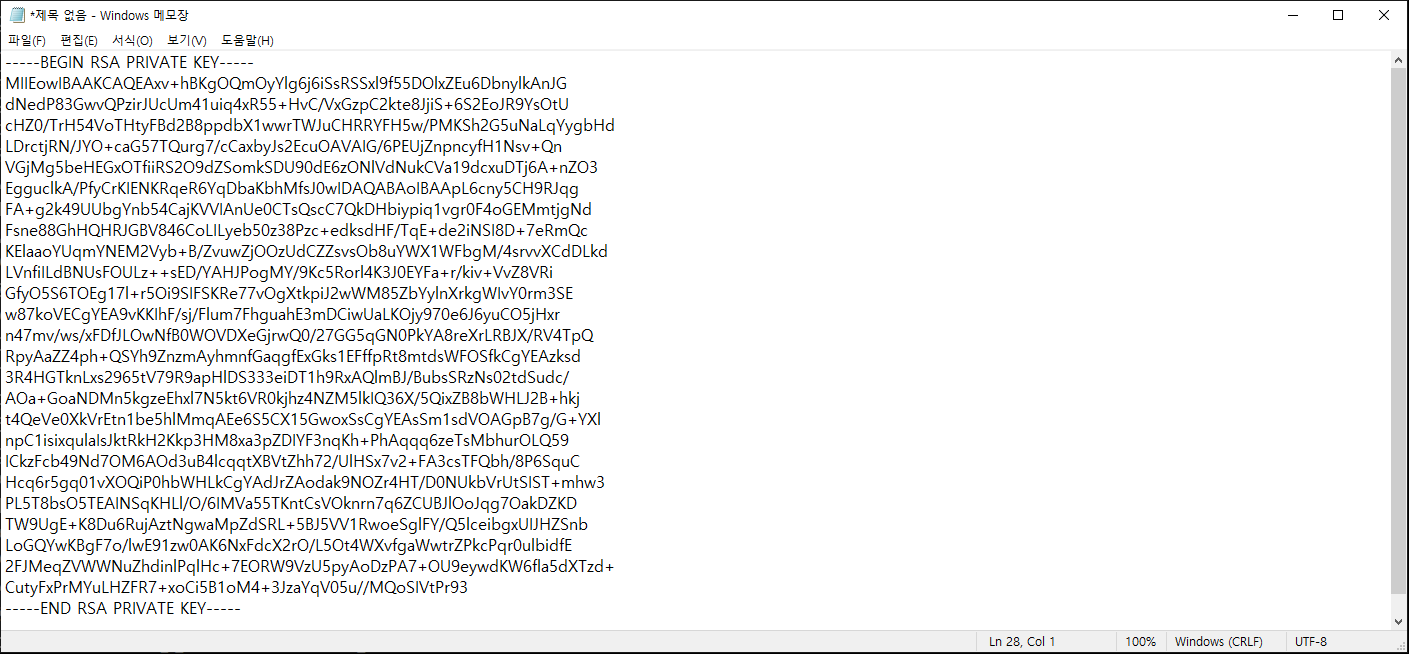 메모장을 하나 열어 키파일을 저장한다.