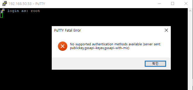 적용이 잘 되었는지 확인을 위해 putty로 비밀번호 접속을 시도해보면