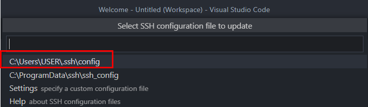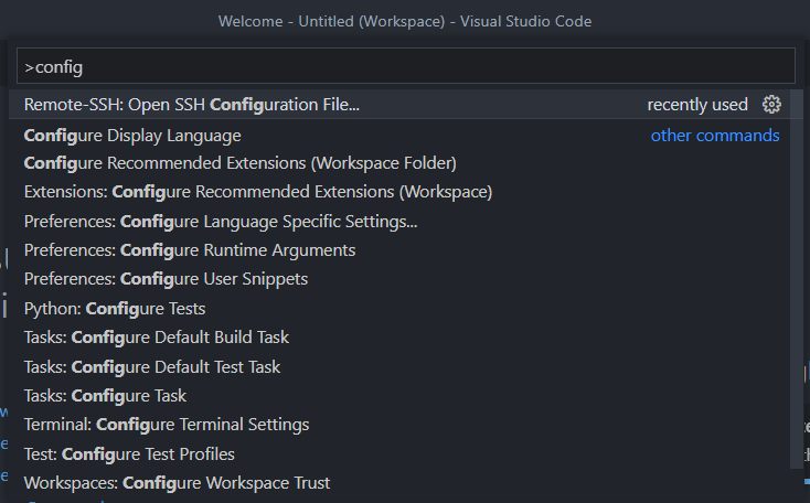 윈도우 기준 ctrl+shift+p를 눌러 config를 입력해 open ssh configuration file에 들어간다.