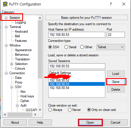 이렇게 정상적으로 .ppk파일을 로드했으면 다시 세션 탭으로 이동하여 Save를 해두면 다음에는 바로 사용할 수 있다.