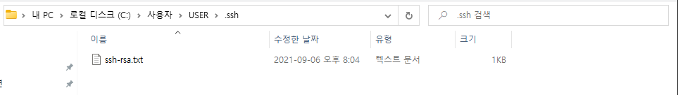 C:\Users\USER 디렉토리 안에 .ssh라는 폴더에 저장을 하는데