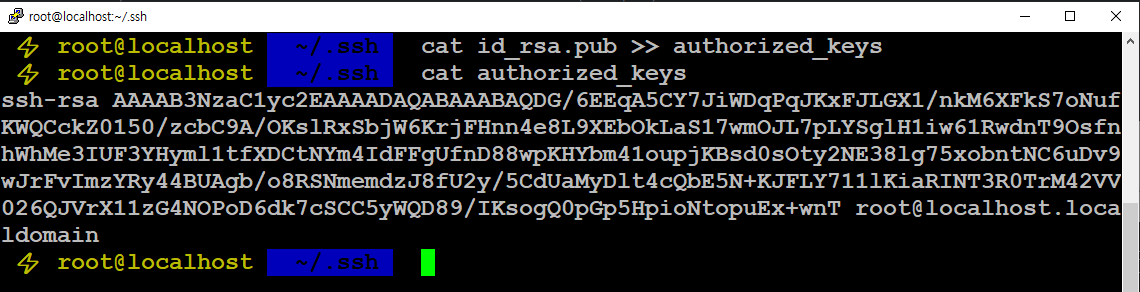 cat id_rsa.pub >> authorized_keys
