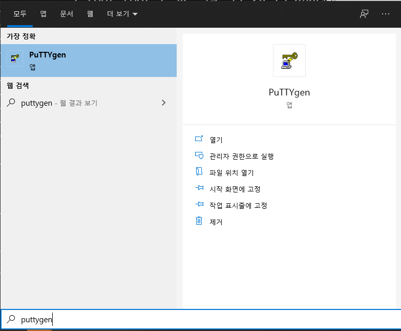 이렇게 서버에 연결하기 위한 키 셋팅이 끝났으면 puttygen을 이용하여 키를 변경해야 한다.