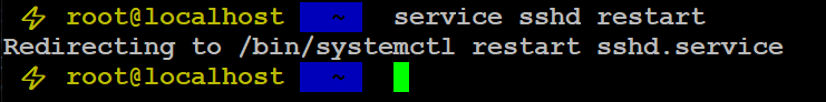 수정이 끝났으면 service sshd restart명령을 통해 ssh demon을 재시작해준다.