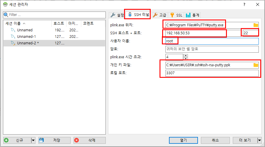 다음은 SSH 터널 탭으로 이동한다.