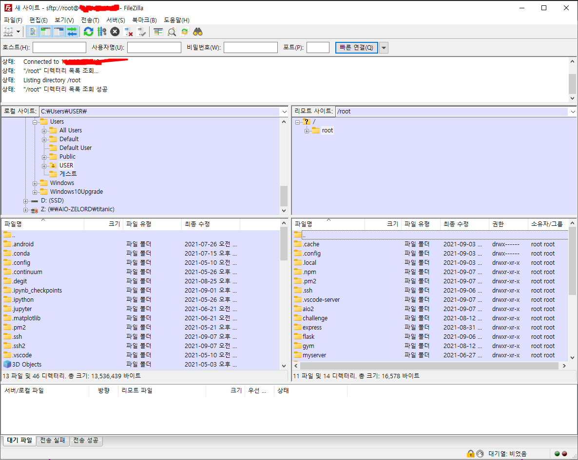 정상적으로 SFTP로 접속한 모습 끝!!