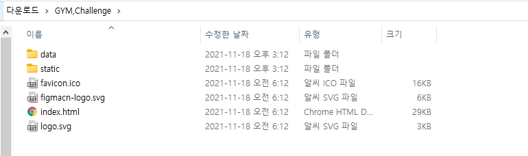 이렇게 다운로드 받은 zip파일의 압축을 풀게 되면 다음과 같은 폴더 구조가 나오는데 이중에 index.html 파일을 더블클릭하여 실행한다.