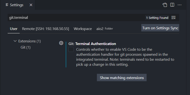 이럴 때는 ctrl + p > settings > git.terminal에 있는 git: terminal authentication을 끄고,