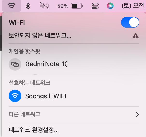 숭실대학교의 wifi를 사용하기 위해선 Soongsil_WIFI 에 연결을 한 뒤, 인증을 거쳐야 한다.