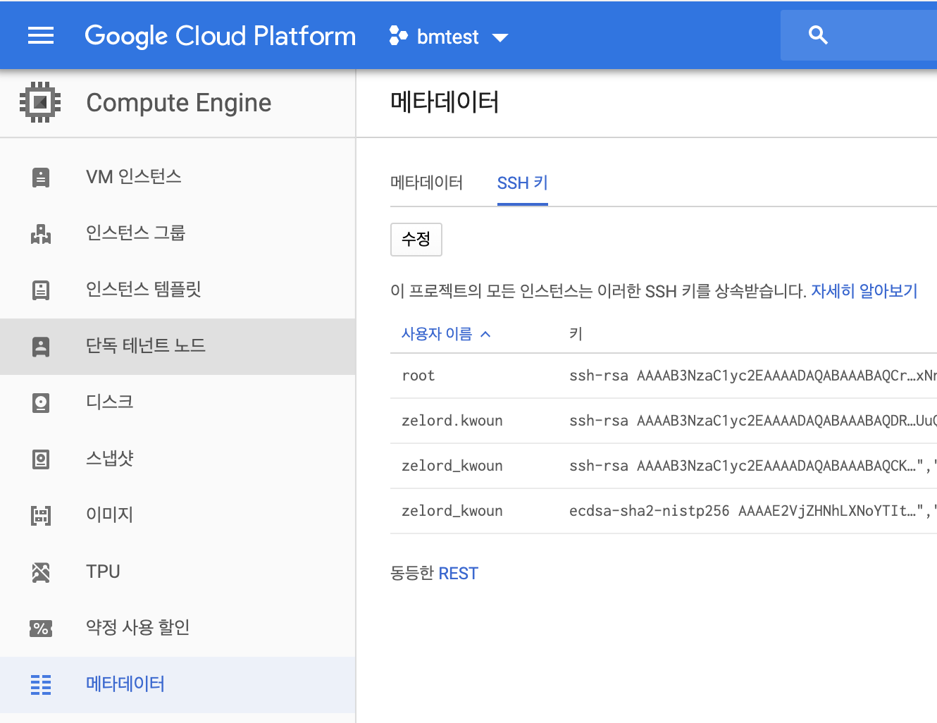 => 메타데이터 SSH키 등록 ( reboot)
