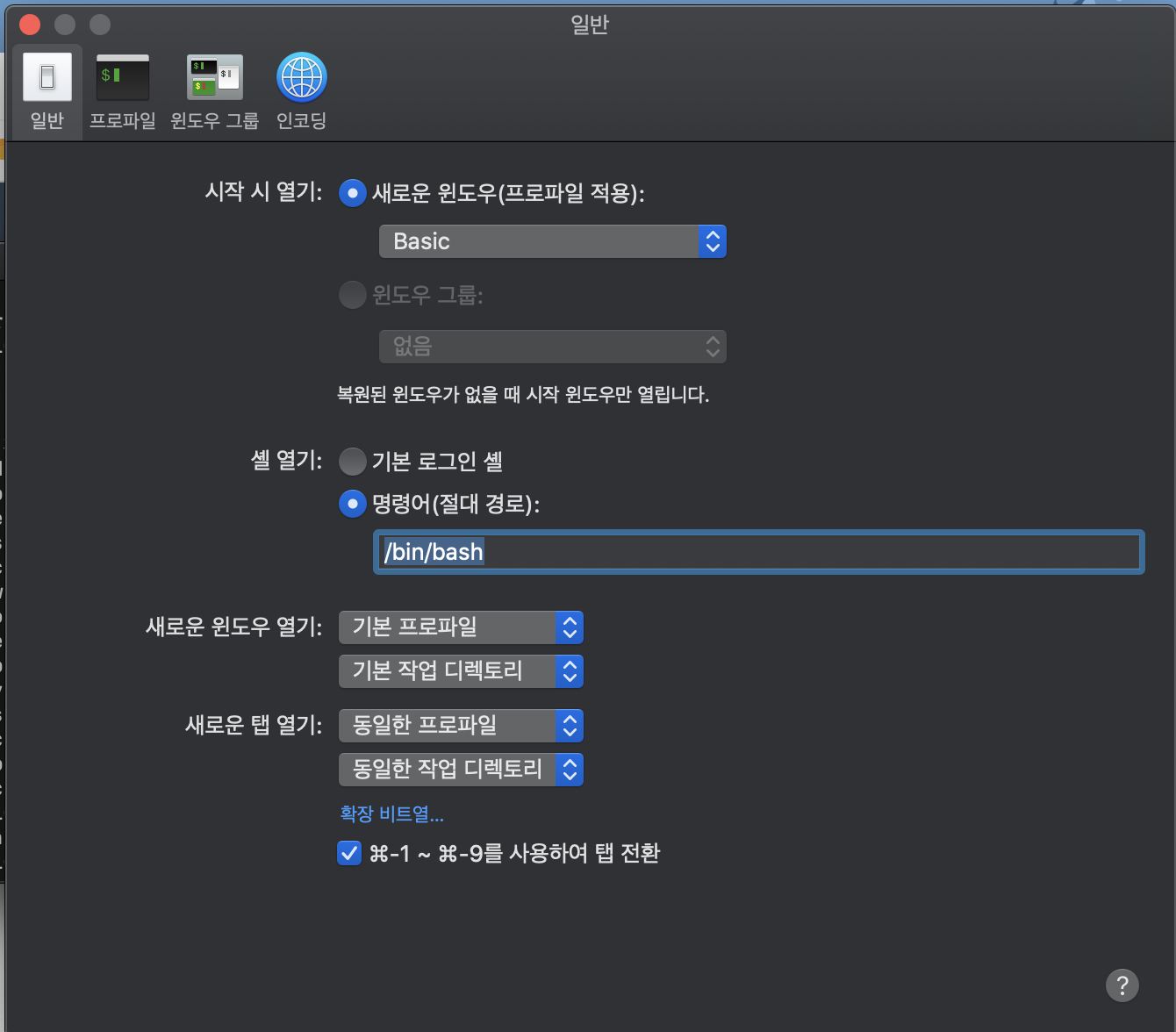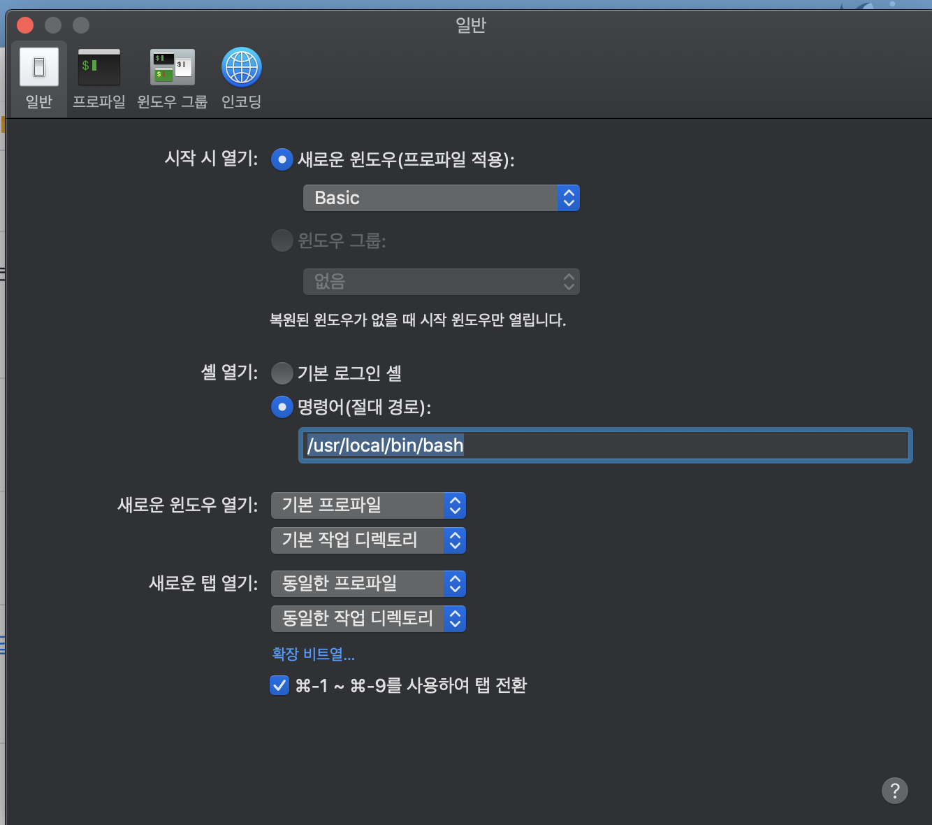 그래서 terminal에서 환경설정에 들어갔다(Command + ,)