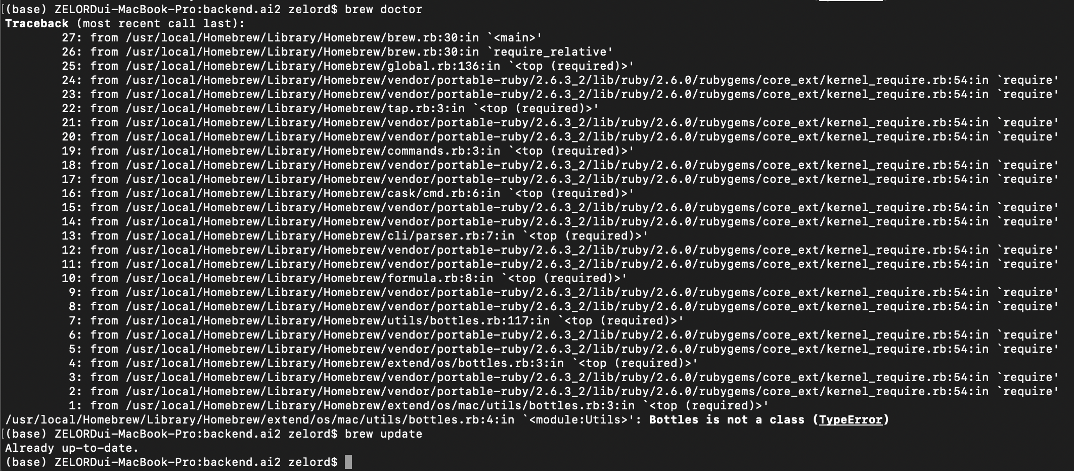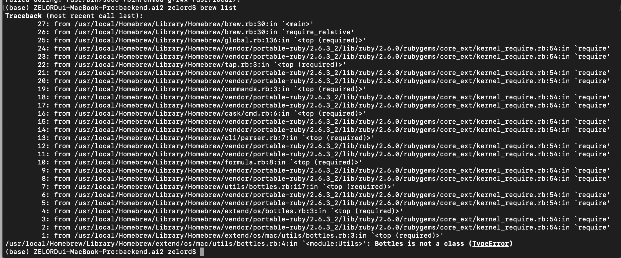 brew list, brew install, brew docter를 해도... brew가 아프다고 한다...