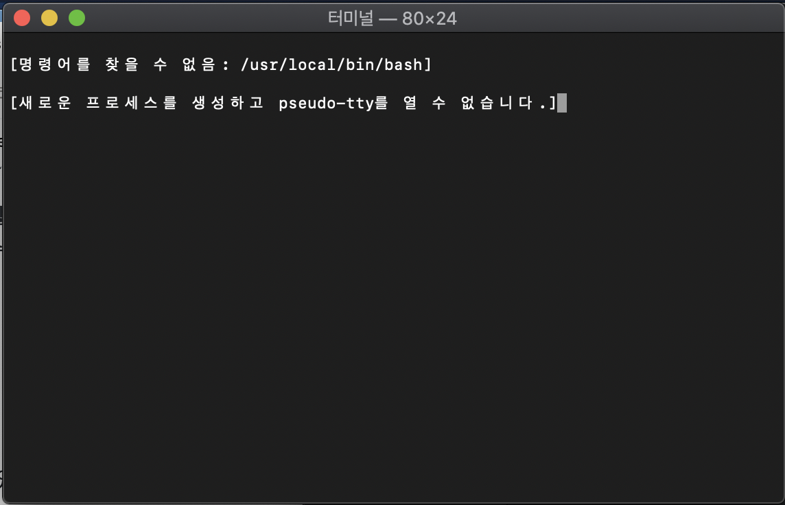 기존에 /usr/local/bin/bash라고 되어있던 걸 원래 경로인 /bin/bash로 바꿔주면 terminal이 잘 실행된다.